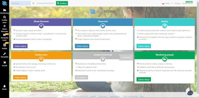 Prawdziwa zabawa i sensowna praca zaczyna się, gdy wykorzystamy specjalistyczne narzędzia. Programy takie, jak SEMSTORM lub Senuto, oba polskie, dają możliwość wszechstronnej analizy słów kluczowych. Ilość możliwych scenariuszy zastosowania tych narzędzi jest praktycznie nieograniczona.